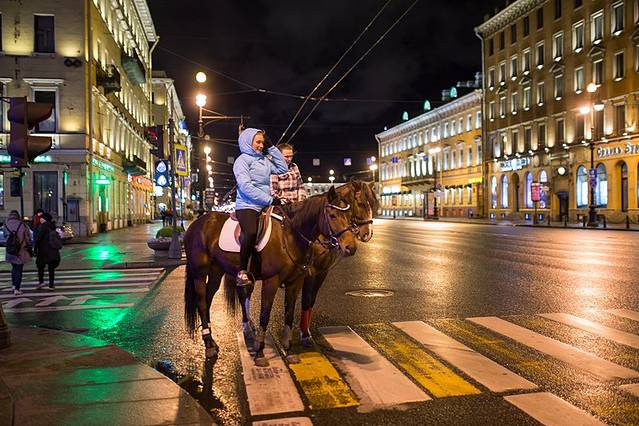 看完开桥已经是夜里的两点半,毫无悬念的已经没有交通工具所以只能11路溜达回去。但是,战斗名族自有办法,大半夜在涅瓦大街上骑马草鸡拉风有没有?能不能开发个app叫滴滴快马,没车了打个马的就很赞有没有。