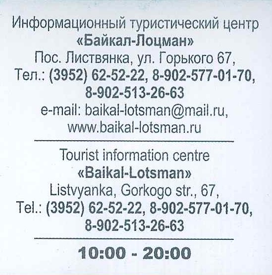 在高尔基大街的靠近 Chapaev St 路的地方有一个Information centre,名字叫Baikal lostman。那里的俄罗斯妹子英文不错。你可以在那里得到很多有用的信息。也可以在那里预定回利镇或者去奥利洪的车票。应该也可以预定环湖小火车。