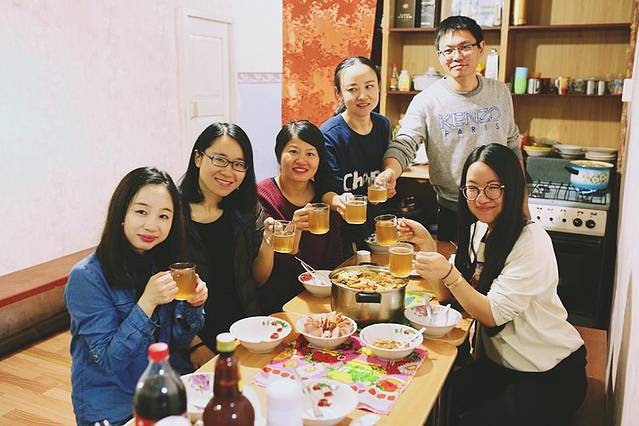 三天前,两位提前出发的小伙伴从这里上车,开始了西伯利亚大铁路的半程穿越。几个小时后,在伊尔库茨克的青旅,她们俩已经在笑呵呵的等我们了。至此,5人小队集结完毕。5人小队里除了vivi是新人,剩下4个已经连续三年的国庆一起出行,14年的川西是算是初见,15年的阿里已经相知,16年俄罗斯就开始相杀了,oh,no。