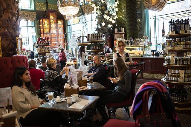 很难把那么一个集富丽堂皇和小清新于一身的漂亮地界儿和食品商店这样一个土掉渣的名字联系到一起。可叶利谢耶夫食品店偏偏就是那么一个所在。豪华优雅的装饰,水晶吊灯,精致的食品,英语流利又周到的服务员。被上海第一食品商店歪曲了那么多年的食品店形象终于得到重塑,不可以貌取人也不能以名取店啊。