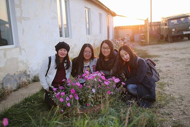 原以为摆渡到对岸就算大功告成,高兴地太早。奥岛的中心----胡日尔镇在岛的中部,意味着你还要在岛上的路上颠上大半个小时。这一段基本是土路和半沙化的草原,司机大叔把小巴士当飞机开,结果到酒店也已经是下午的5点左右了。