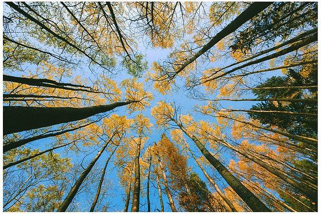 清晨的阳光渐渐翻过山头,照到了这一侧的山林,树林里的色彩立刻跳跃起来。厚厚的黄叶铺满山路,挑一枚颜值高的透过阳光拍一张逆光小清新。