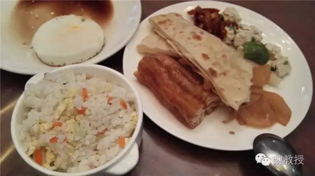 油条、饼都是从外面买来的,我看到服务员用塑料袋提进来的。鸡蛋是现场煎的。小菜每天也有不同的几样,稀饭有大米粥和小米粥,还有蛋炒饭,这样的早餐填饱肚子也凑合着了。多花85元,我们一家三口吃了5顿早餐,价格也还算合理。