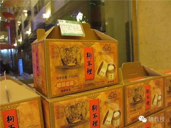 狗不理礼品套装上印着慈禧太后的照片,据说袁世凯曾带狗不理包子进京献给慈禧太后。慈禧太后尝后夸赞道:“山中走兽云中雁,陆地牛羊海底鲜,不及狗不理香矣,食之长寿也。