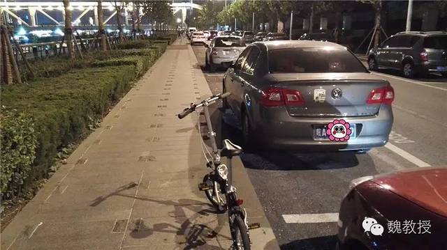 尽管指示牌最后一行写的有室内停车场,但是科技馆附近的停车场栏杆都不抬起来,说车停满了,我只好把车停到马路对面的人行道上,紧贴着墙壁,尽量不压到盲道。实际上后来我进去,看科技馆里面还有很多停车位,科技馆旁边的几家单位都有数量众多的停车位,不知道这些人为什么不让我们停。