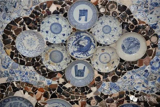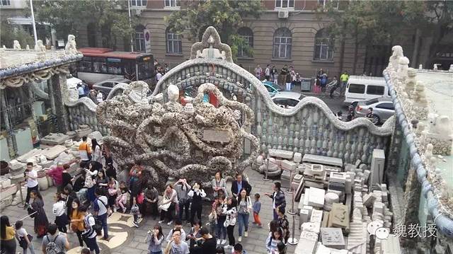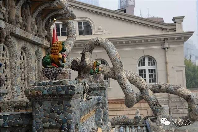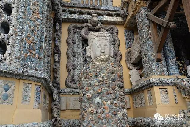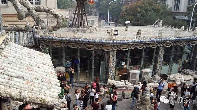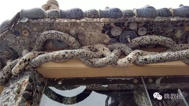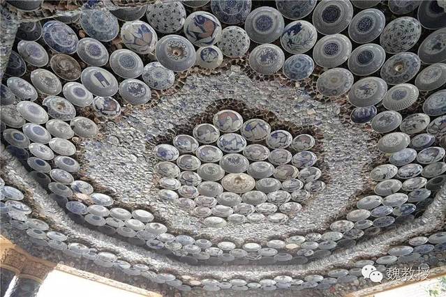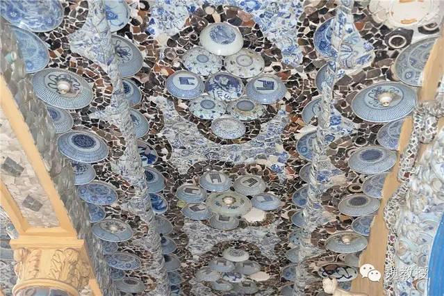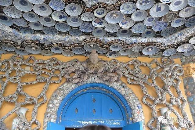张连志在天津还有一栋“疙瘩楼”,也是贴满了瓷片,真是不可想象。这些瓷器据说都是破损的,破损的一面粘在墙上,展示的是完整的那面,也算是物尽其用了。我在想,将来若是取下来,会不会就完全碎掉了?