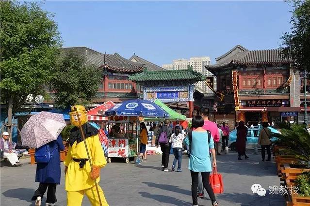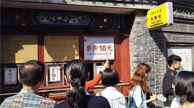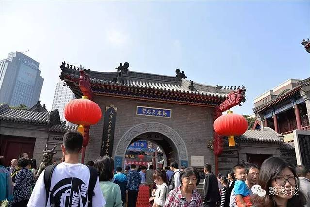 在参观天后宫之前,我们还免费参观了天津民俗博物馆。这家博物馆曾经就设在天后宫里,所以有个后门可以进去(下图中的圆门),偶尔没有人看,还可以混进天后宫去,不用买票的,省10元。