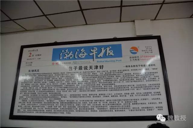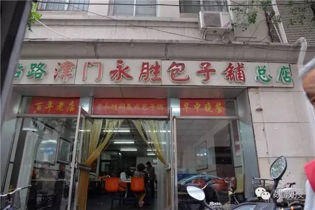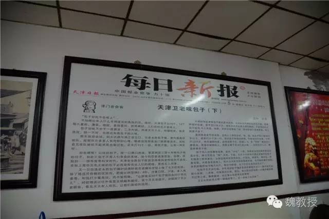 然后就到了津门永胜包子铺总店,三轮老头停下车,让我们进去吃,他在门口等着。看店里悬挂的介绍,永胜包子曾是狗不理包子的一个分支,一些报纸上还刊登了介绍永胜包子铺的文章。