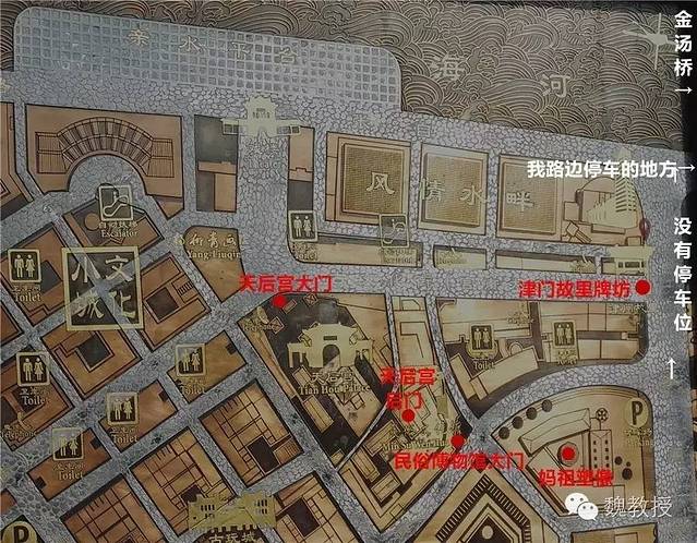 10月5日上午开车去天后宫9:32,门口停车位满了,车很多,只好让白老师先下车,我继续往前开,到海河边右转,马路两边都是停车位,但是都满了,又开了一段才找到一个空位,停进去,收费员过来收20元停车费,说不限时。不限时好啊,玩起来没有什么压力了,因为不限时,今天我们把车当成航空母舰,以此为中心四处转悠,直到晚上19:50才开走。