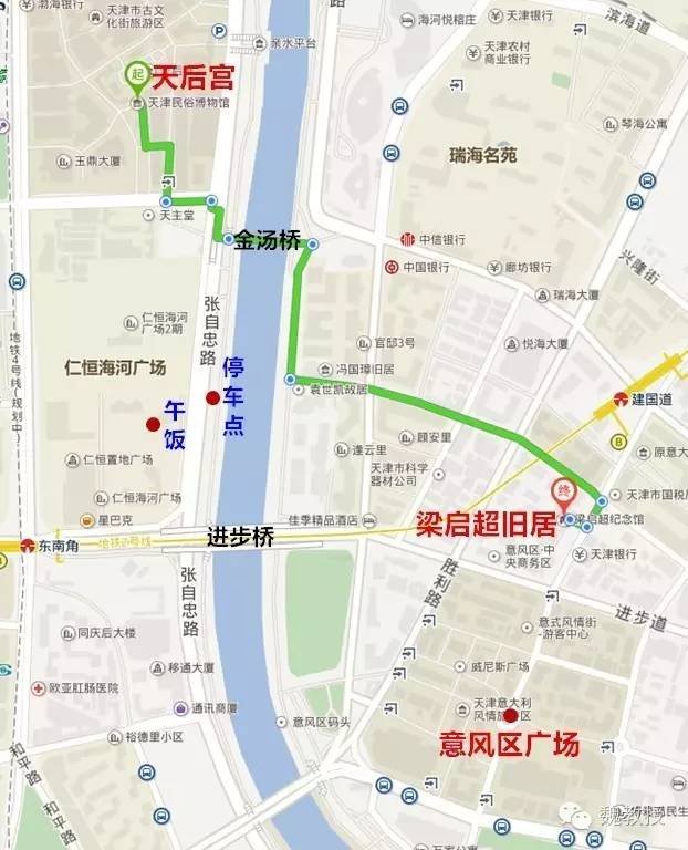 10月5日上午参观天津民俗博物馆、逛逛天后宫 ,经过金汤桥,参观梁启超旧居,逛逛意大利风情旅游区 ,中午骑自行车找到美食庭苑,在京小馆点菜吃饭84元。仁恒置地广场张自忠路东门可进。