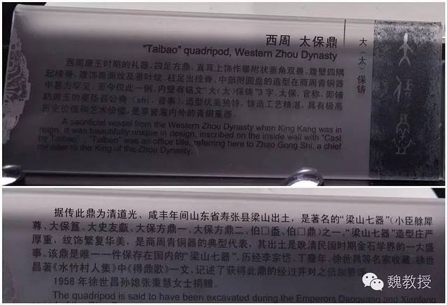清朝,山东寿张县梁山出土了七件青铜器,器型庄严厚重,纹饰华丽繁缛,是商周青铜器的典型代表,西周太保鼎是唯一一件收藏在国内博物馆的“梁山七器”。