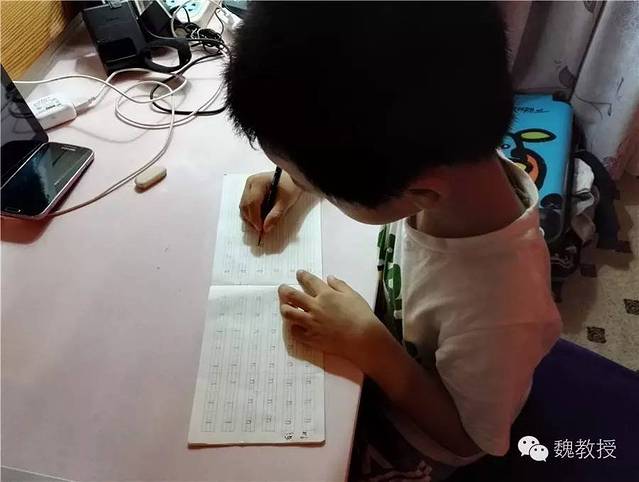 21:35回到宾馆,魏小宝开始写作业,做中国好幼儿园学生……