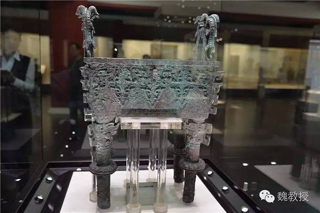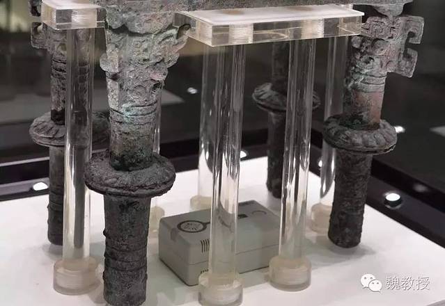 最为显著的是柱足上装饰的扉棱和柱足中部装饰的圆盘,这在商周青铜器中是独一无二的,非常奇异。