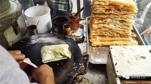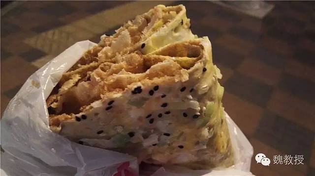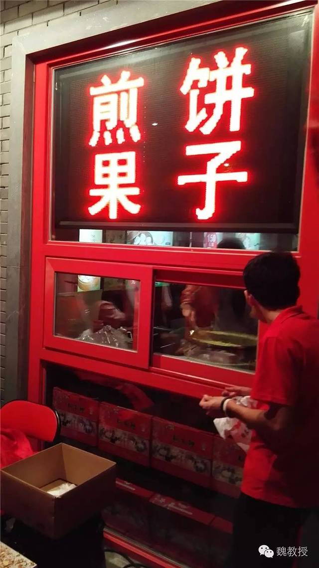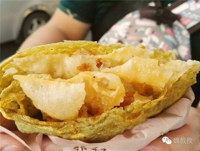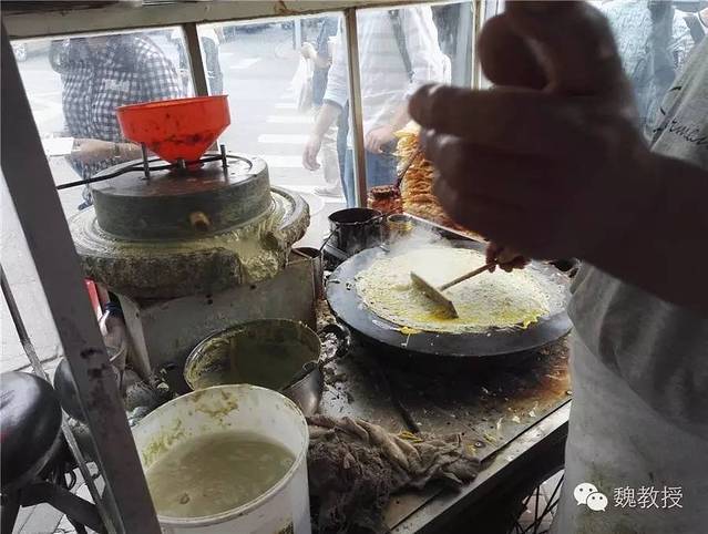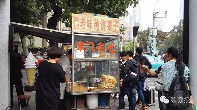 10月2日上午玩的瓷房子 和张学良故居 ,在街上买了一份煎饼果子,小石磨现场磨的面,摊的煎饼,果子用的是薄脆,而没有用油果子。煎饼果子是天津市的著名小吃,由绿豆面制作的薄饼,鸡蛋,还有馃子(油条)或者薄脆的“馃篦儿”组成,配以面酱、葱末、辣椒酱等作为佐料。在天津五大道街头,排队买到10元一份的煎饼果子,吃起来味道还可以,应该是比较正宗的天津味了。