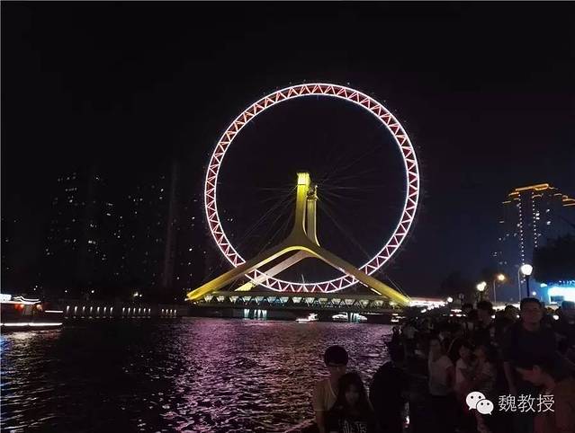 今晚不能坐天津之眼,那我们就坐游船在海河转转吧!结果又有很多人排队等着坐船,我们排了十几分钟,挪动长度有限,加上腹中空空,渐渐失去耐心,开车离开。