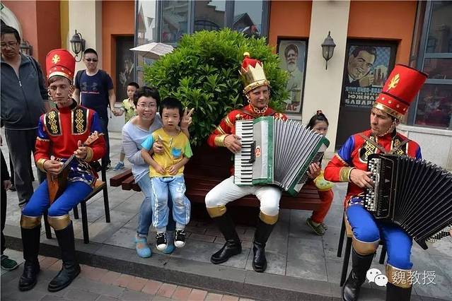 几位音乐工作者在街边演奏,我们一开始小心翼翼拍照,生怕被发现了不让拍,后来发现,游客还可以随意地坐在他们身边的椅子合影,他们也会配合得摆出剪刀手的造型。这么亲民,大家就释然了,依次让孩子坐到他们中间拍照。魏小宝对于手风琴感兴趣,要上去按那黑色的键,遭到了拒绝。