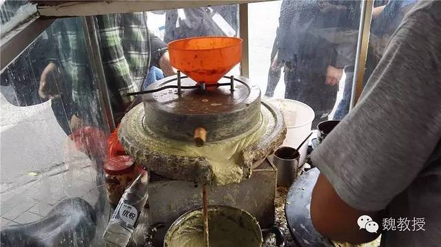 11:30进入张学良故居,12:10参观完了,我们出来往停车场走,在路边看到石磨现磨现卖的煎饼果子,很多人排队买,看上去很正宗的样子,我们买一个尝尝10元。