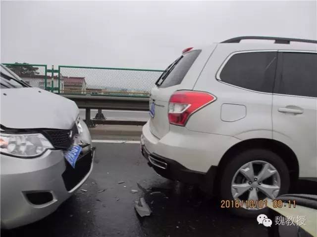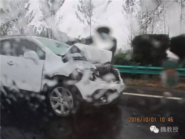 又往前开,在快到淮北的下口附近,车又多起来,缓慢通行,到前面一看,又是几起交通事故。下雨路滑,特别容易追尾。