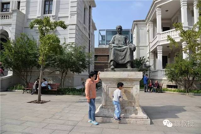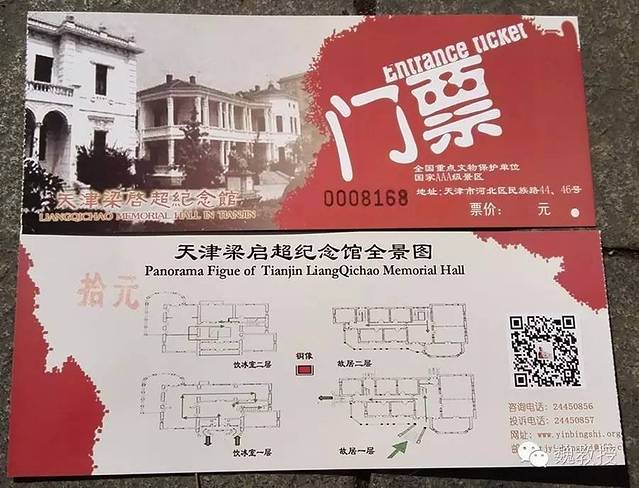 走到梁启超旧居,这是目的地之一,买票每位10元,进去参观。梁启超号饮冰室主人,于1915年定居天津,此处是梁启超购买旧意租界西马路空地所建,分为寓所和书斋两栋楼:寓所为意式两层砖木结构楼房,建于1914年,书斋“饮冰室”为意大利建筑师设计的浅灰色两层洋楼,建于1924年。梁启超后期著述均在“饮冰室”完成。如今两栋之间的大院中央竖立着一尊梁启超铜像,高2.38米,重400多公斤,再现了梁启超年青时朝气蓬勃的风采。