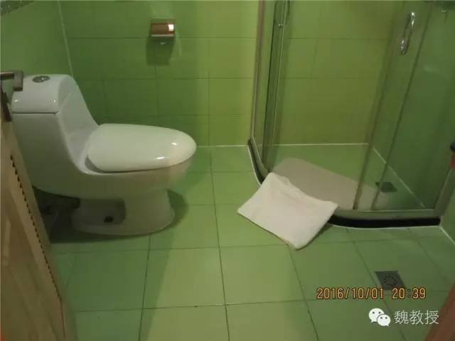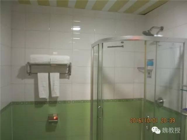 最不能忍受的是,喷头是固定在墙上的。大家知道,我是带喷头的,当时我兴高采烈地拿出我的喷头来更换的时候,发现无处下牙。关键是这么大的喷头堵了很多孔,水柱乱喷,又不能取下来,给孩子洗澡很不方便。下水有时候堵塞,拖鞋都能飘起来,期间让酒店维修过,然并卵,我只能给差评了。