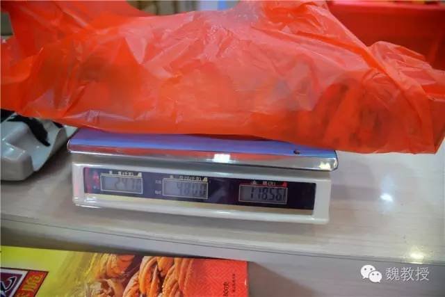 48元一公斤,看电子秤上是2.47公斤,乘出来是118.56元,还可以支付宝付款,很方便。白老师又买了一些小的麻花,我们就出来了。上车之后,白老师问这大麻花有多重,我说5斤多,她一提就说不够5斤。我不买菜没有经验,想着三轮老头等着我们吃包子花了20分钟又不可能从15元消费中拿到回扣,总要让他从麻花里拿些回扣吧?就没有回去要求复秤。后来回家一称,只有2公斤,可见这是三轮老头耐心等我们吃包子最终的追求所在。我在地图上也找到了这家店的地址,发布在这里,也算作对桂发祥十八街麻花直营店缺斤少两的一个投诉。