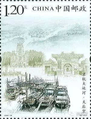 这枚邮票的中间右侧,就是天后宫的检票口。天津天后宫建在海河边,天津北运河和南运河在天津会师,又在这里被海河一齐送入渤海。所以天后宫能够入选这套邮票。