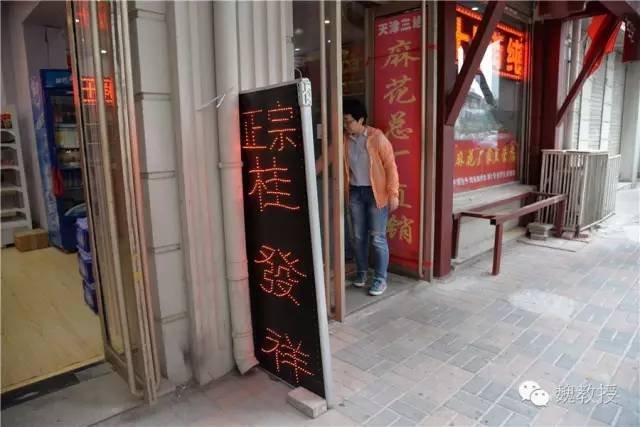 这里有十八街麻花总厂,有桂发祥的招牌(上图),三轮老头却不让我们去买。他给我们推销三轮车上挂条幅的十八街麻花直销店。