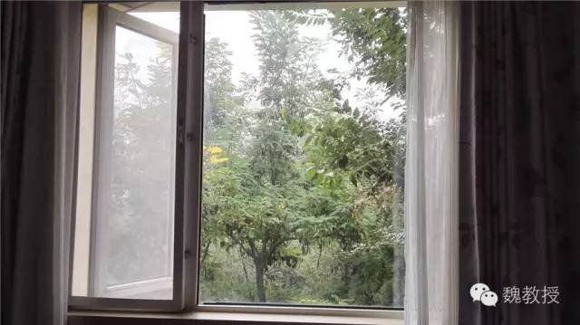 大窗户,左侧窄条可以打开,有纱窗也可以打开。最关键的是窗外竟然全部都是植物,看惯了窗外是楼房密密麻麻窗户的我惊呆了,这么好的条件哪里找?