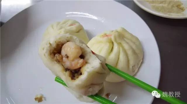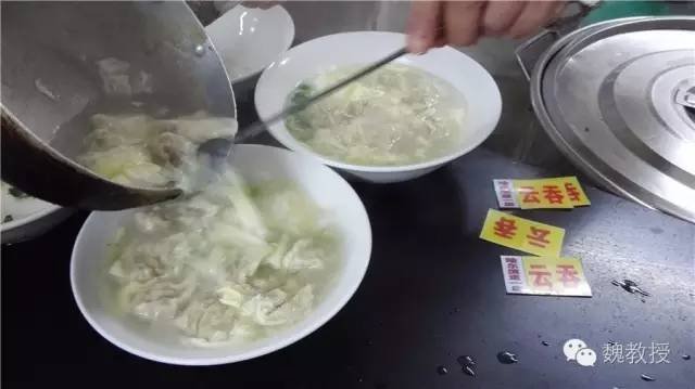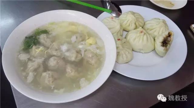 我买了2两三鲜包子9元6个,一碗云吞6元,总共15元。我一边吃一边和白老师在讨论:这才15元,三轮老头应该不会拿到回扣了吧?云吞汤里有蛋花,每个包子里都有一个大虾仁,吃起来味道和狗不理也差不多,而我们昨晚吃的狗不理,1个包子就12元,所以这永胜包子确实值得推荐。因为当时才11:30,肚子还不饿,我们就随便吃了一点尝尝味道,魏小宝把云吞的汤都喝光了。