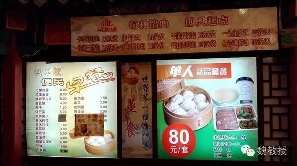 如今狗不理已经不是普通人消费得起的包子,最便宜的包子也要12元一个。中国人喜欢跟风,就卖游客的生意,也能支撑狗不理活些时日。我们也未能免俗,点了4只传统猪肉包,48元,吃过要成仙了。就这,交了钱还要等45分钟,只拿到一个小条子,后来差点弄丢了小条子,没有小条子连包子都吃不上了。最上面一行的霸王条款:每种馅心,四只起点。