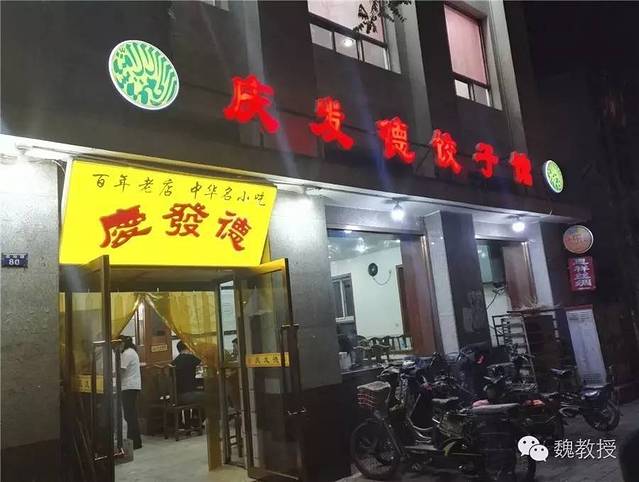 前面不远处有一家百年老店中华名小吃庆发德饺子馆,我们进去点了两盘饺子,吃撑了。