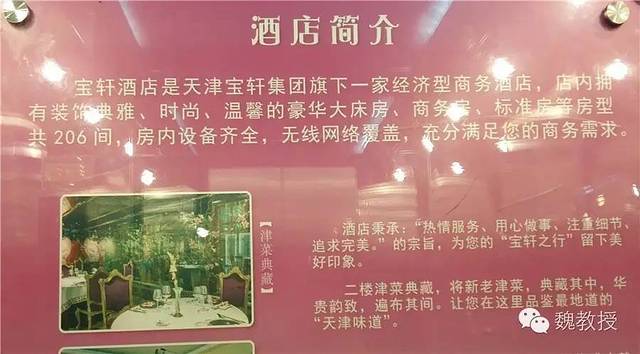 我们入住的宝轩酒店三楼客房,二楼就是津菜典藏,他们两家都属于宝轩投资集团(旗下拥有“耳朵眼”、“津菜典藏”、“宝轩渔府”、“宝轩酒店”、“禅素”、“大福来”六大品牌)。津菜典藏在大众点评上评论很多,口碑不错,高端津菜馆,一般天津人来了外地朋友都要在这里吃一餐正宗的天津菜。10月4日下午,我们看完天津博物馆回到酒店还早,就尝尝津菜典藏吧!