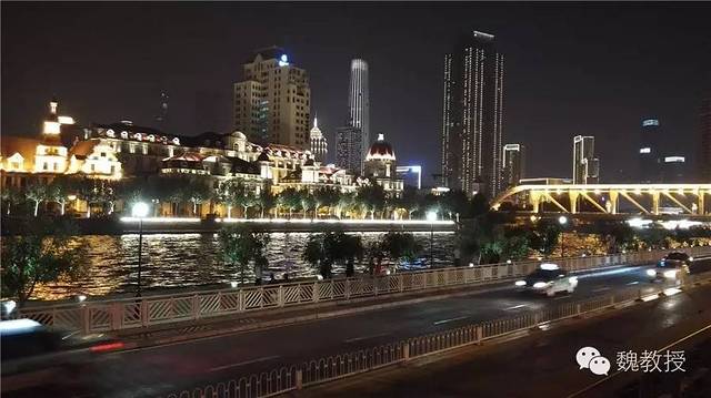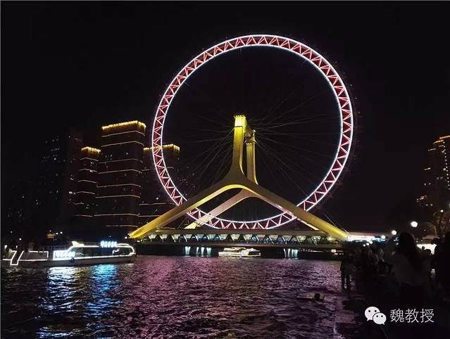 吃饺子时,折叠自行车也跟着我被拎到二楼,吃完我先骑自行车回海河边的汽车边,海河两岸夜景也非常漂亮。
