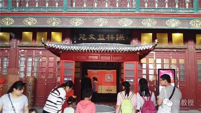 谦祥益是山东财主1906年投资开办的,著名的经营丝绸布匹生意“八大祥”之首,建筑坐北朝南,建筑风格中西合璧,三层三院、三进天井外廊式砖木结构,小青瓦顶,条石作碱,青砖砌墙,磨砖对缝,深灰色瓦当图案,古朴浑厚。