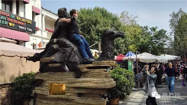 看看老外也爬到雕塑上去合影,谁说只有国人不文明,我们这是亲民行为。