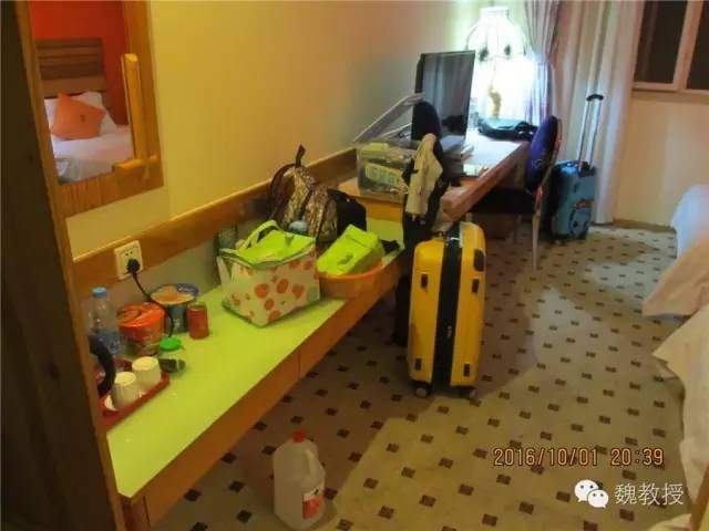 房间20㎡,大小适中,有衣柜、镜子,每天赠送两瓶矿泉水。我最喜欢的是有一长条的桌子和台子,东西分区摆放,非常方便。
