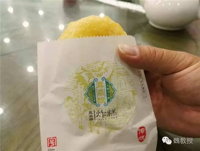 10月5日下午到谦祥益文苑看相声 ,晚上从估衣街出来,看到街边卖耳朵眼炸糕的,白老师排队买了一个现做的3.5元,热的果然好吃。这耳朵眼炸糕和宝轩酒店、津味典藏都属于宝轩投资集团的。