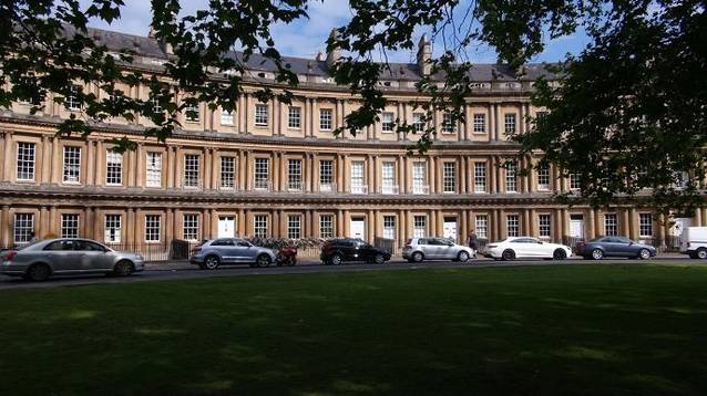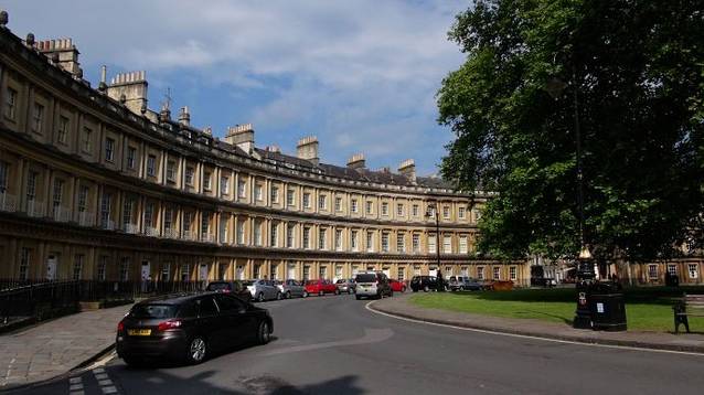 我们计划明天离开巴斯去距离巨石阵最近的一个城市索尔兹伯里,今天我们可以用一整天的时间来感受这个城市的美丽和优雅。一大早,在酒店里享用完一顿超豪华的英式早餐。早早的就出门了。沿着埃文河畔的GREEN PARK ROAD , 一路向西,再向北,去看小城里最著名的一座建筑皇家新月楼(Royal Crescent )。