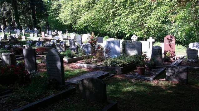 顺着小路拾阶而上,原来这里是一片墓地,墓地的中央是一座特别朴素的教堂。