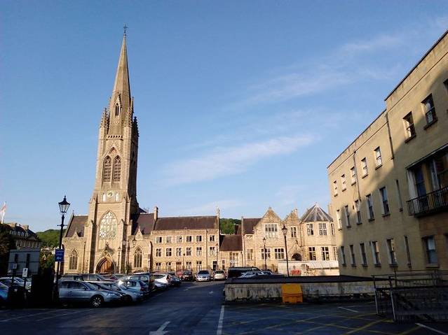 这个有着漂亮尖顶的教堂并不是巴斯那个最著名的巴斯修道院。这个教堂叫做St Michaels Without Church .