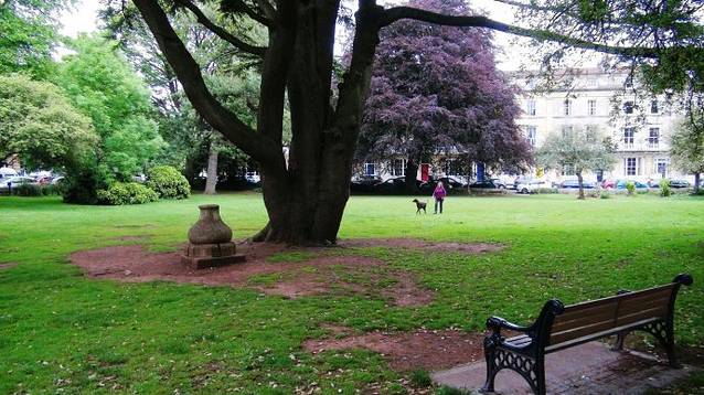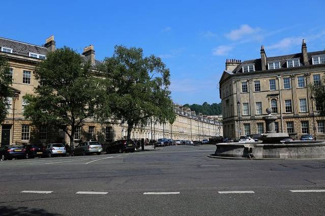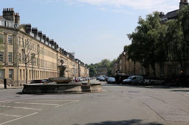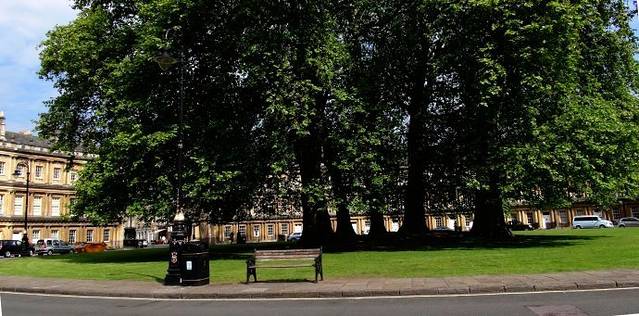 广场的中心是几棵高大的参天古树。巴斯的许多古老壮观的建筑都出自约翰·伍德父子之手,父亲老约翰·伍德在18世纪设计巴斯的城市规划时,建造了一座象征太阳的圆形广场和一座象征月亮的皇家新月楼,两者之间由布鲁克大街连接,自此,这种以圆形或新月形广场配置街屋的形式蔚为风潮,对伦敦和苏格兰的爱丁堡的城市规划都产生了很大的影响。
