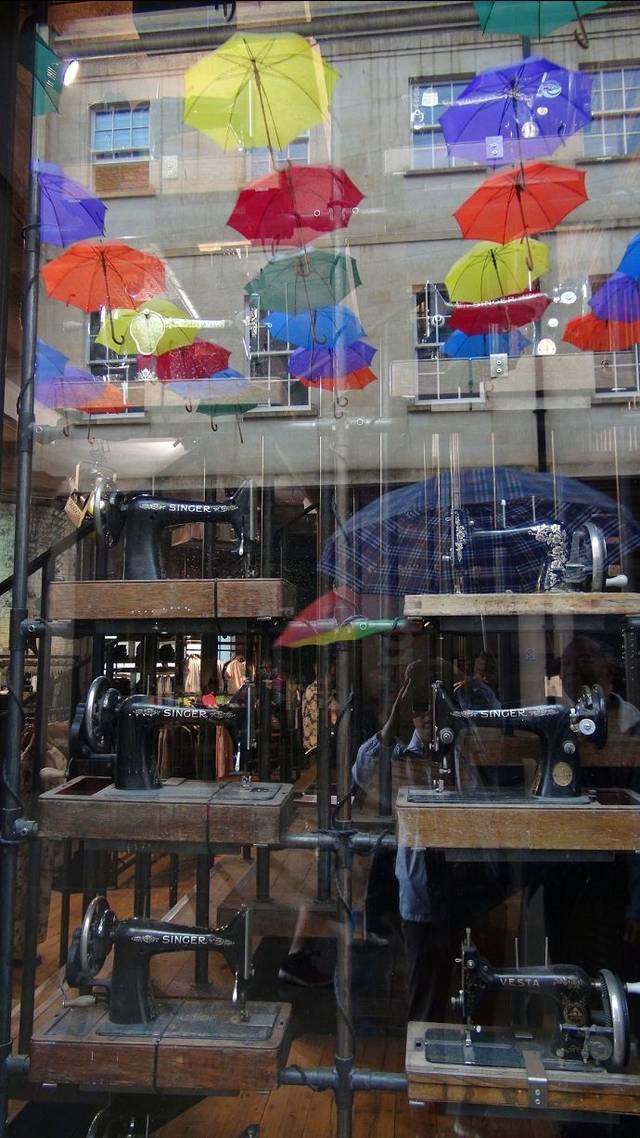 当雨大的时候,我们就躲进商店里躲雨。这家店里的这些老式的手摇缝纫机我看起来特亲切,因为我家曾经有一台。后来也不知道哪里去了