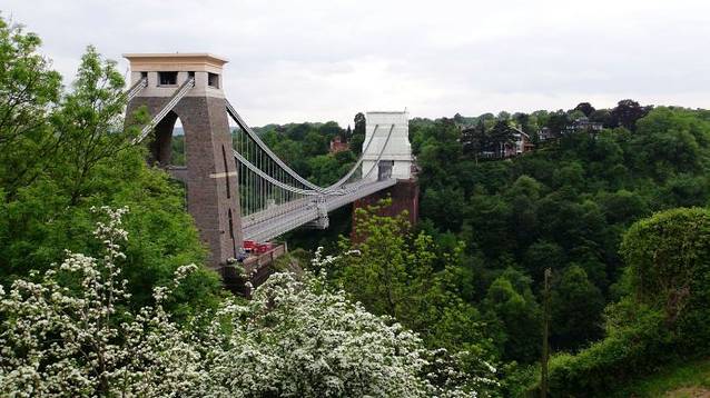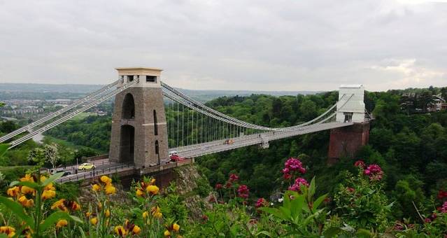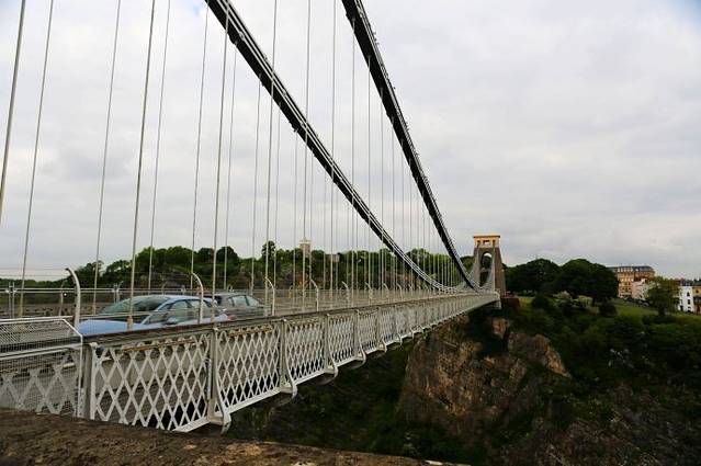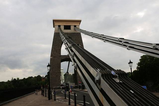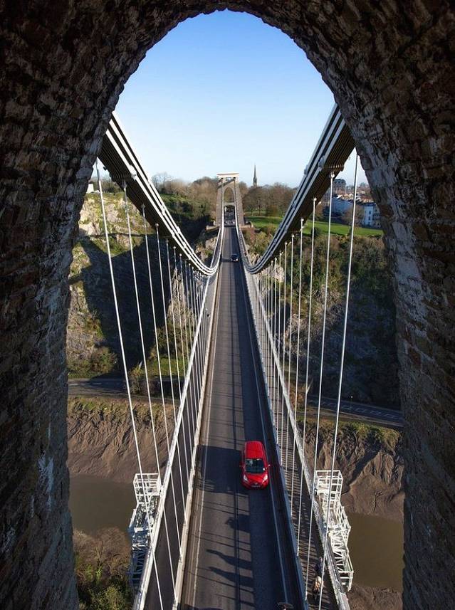 跨越布里斯托Avon峡谷的克里夫顿悬索桥(The Clifton Suspension Bridge),是世界上最早的大跨径悬索桥,它是由天才的设计师、维多利亚时代工程师布鲁耐尔(I.K. Brunel)设计于19世纪30年代,在他去世后的1864年才建成通车,当时只通行人和马车,而现在把它作为四车道桥梁。