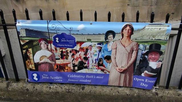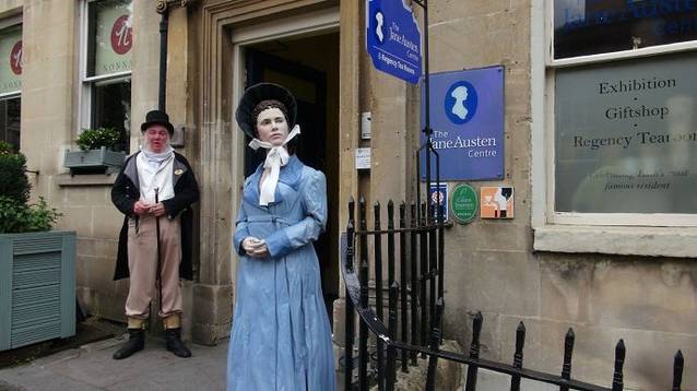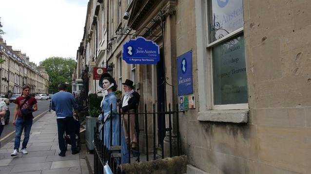如果你找到了女王广场,那你就千万不要错过英国著名女作家简·奥斯汀纪念馆。这个纪念馆就位于女王广场东侧的盖尔街(GAY STREET)上。博物馆附近的街道、建筑以及市容风貌和200年前变化不大,依然如她笔下描绘的那么美妙、优雅、有序。也许正是这个原因,英国BBC影视公司前几年还在这里重拍了《劝导》和《诺桑觉寺》的电视剧。小城巴斯,以她别样的精致、美丽和文化,每年吸引着比她拥有的居民多得多的来自欧洲和世界各地的游客。