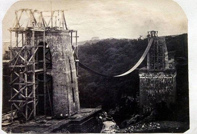 (网络图片)。这里一张大桥当年建设时期的历史图片。大桥建设时间很长,1831年开始动工,但由于缺少资金而频频拖延,终于在1842年停工了,铁链也出售了