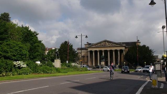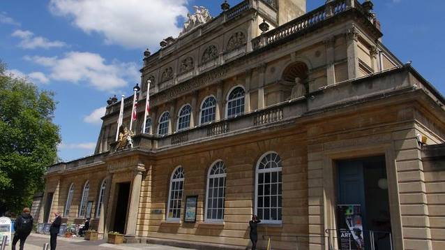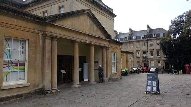 从圆形广场向东一点就是巴斯另一个著名的景点服饰博物馆(Assembly Rooms Fashion Museum)。这家位于市中心的服饰博物馆展示了从16世纪直到现代的各式服装与首饰,其中最有趣的就是展示了裙子从古至今的变化与发展及花纹的象征等,据说连参观的男士都会感觉兴味盎然。我们还是来的太早了,没开门。我在前面多次介绍过,英国的博物馆大多数的开门时间是上午10点,这对于习惯早起的中国人来说,很不习惯。于是我们决定去看那个著名桥梁普尔特尼桥。
