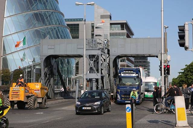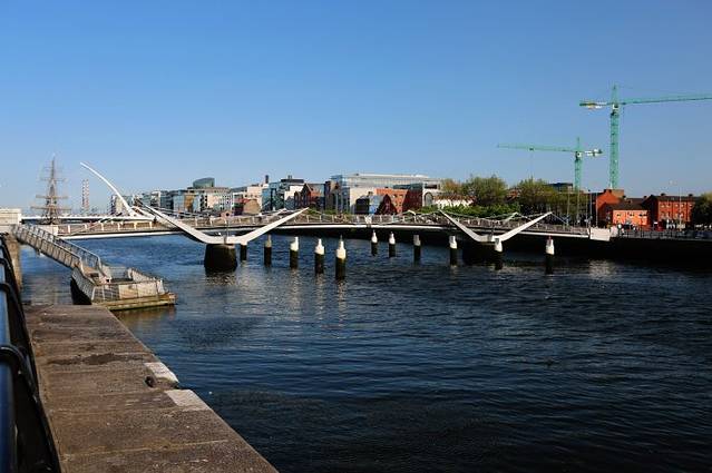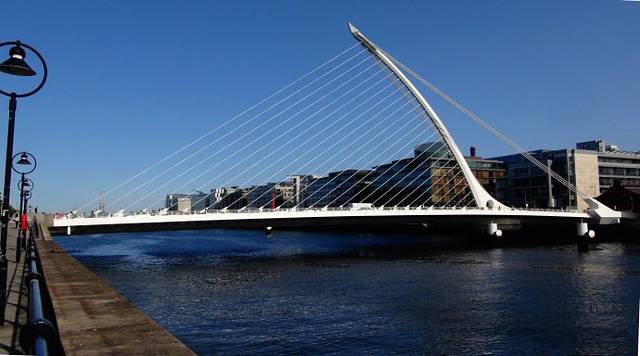 利菲河上这个造型奇特的桥叫做SEAN O'CASEY BRIDGE .