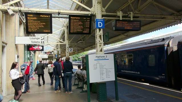 曾经多次介绍英国的铁路系统和如何乘车。进站后最重要的是找到电子显示牌,找到最近的一趟途径巴斯的车辆的站台,来车就上。