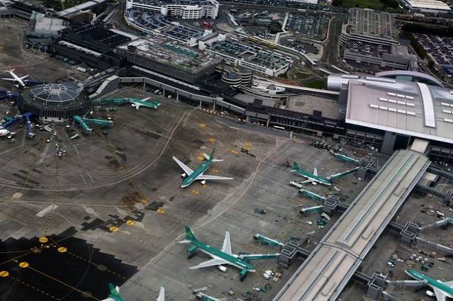 这是从空中看到的都柏林国际机场的航站楼。