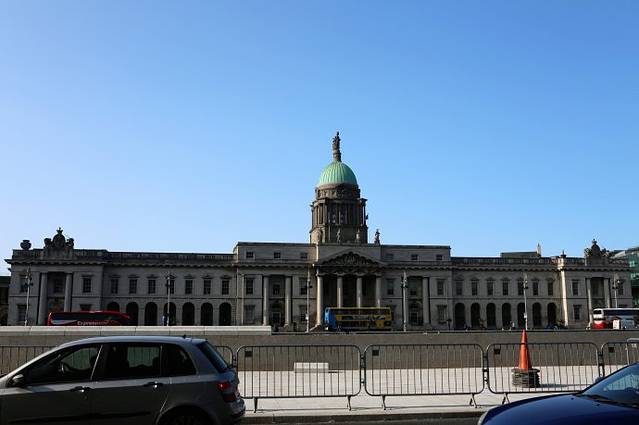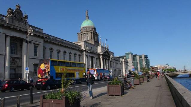 再向西走,你会看到一个非常著名的历史建筑。建于1791年的海关大楼。海关大楼是位于都柏林利菲河北岸的一栋大师级的18世纪新古典主义建筑,被誉为都柏林城市建筑皇冠上的一颗明珠。建筑师是James Gandon,整个建筑于1791年耗时10年建成,花费为当时不可想象的£200,000。